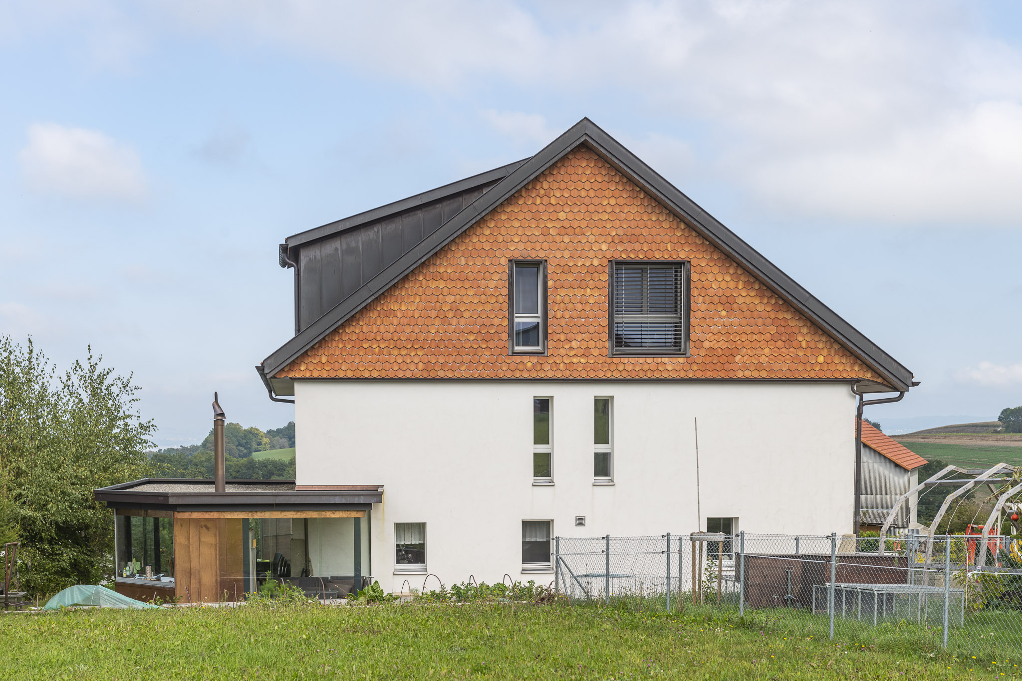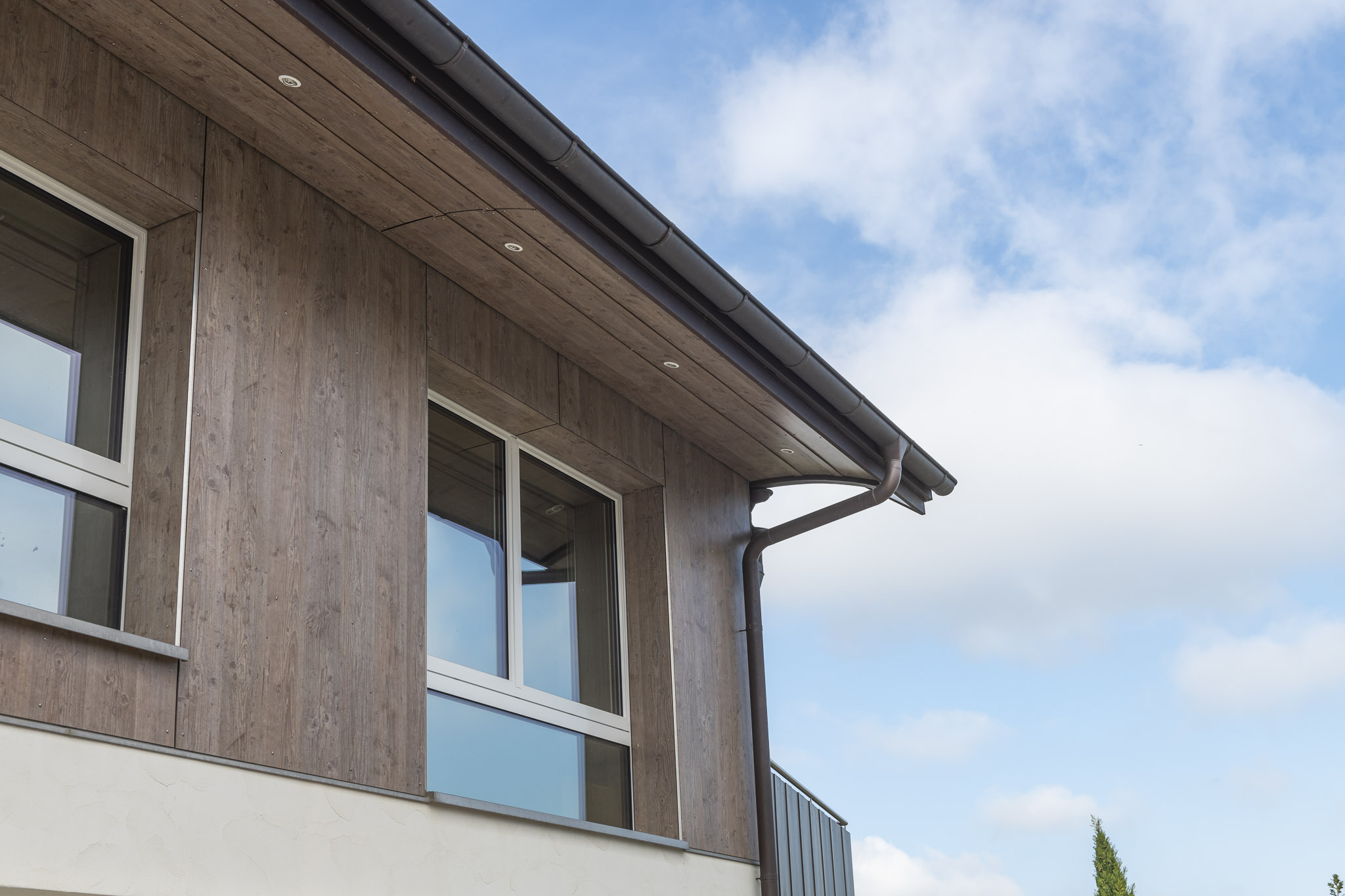 Cette maison a été rénovée en valorisant le bois naturel à l’intérieur, pour une ambiance chaleureuse et authentique. À l’extérieur, le pignon en tuiles apporte caractère et originalité à l’ensemble.