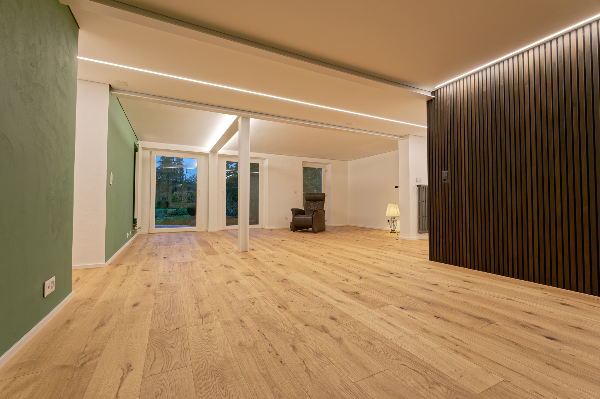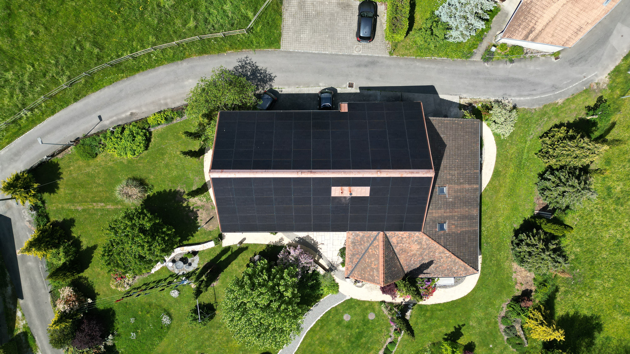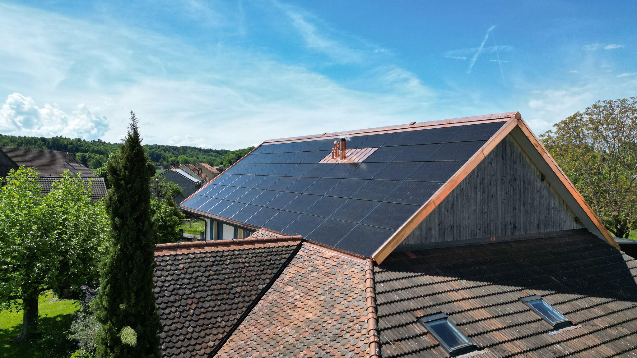 À Montagny, la rénovation a commencé par la réorganisation et la modernisation du séjour. L’année suivante, la toiture a été entièrement reprise et transformée en une installation photovoltaïque intégrée.