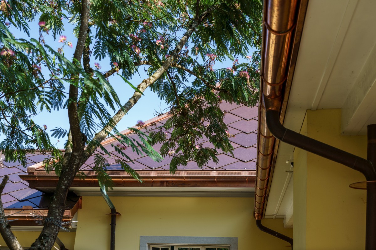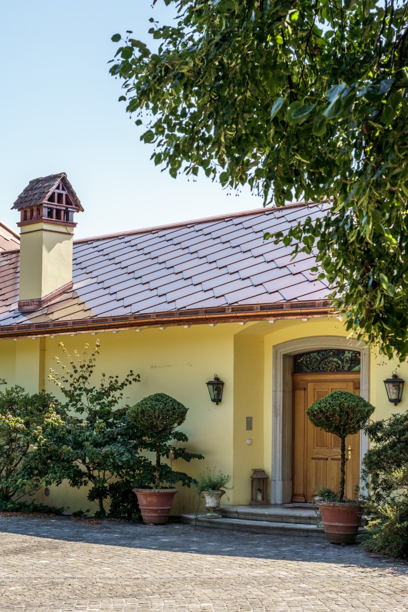 Près de 900 m² de couverture ont été entièrement refaits pour accueillir une installation solaire intégrée en tuiles losange couleur terracotta. Un chantier rare, qui réunit design, technique et performance sur une toiture unique en son genre.