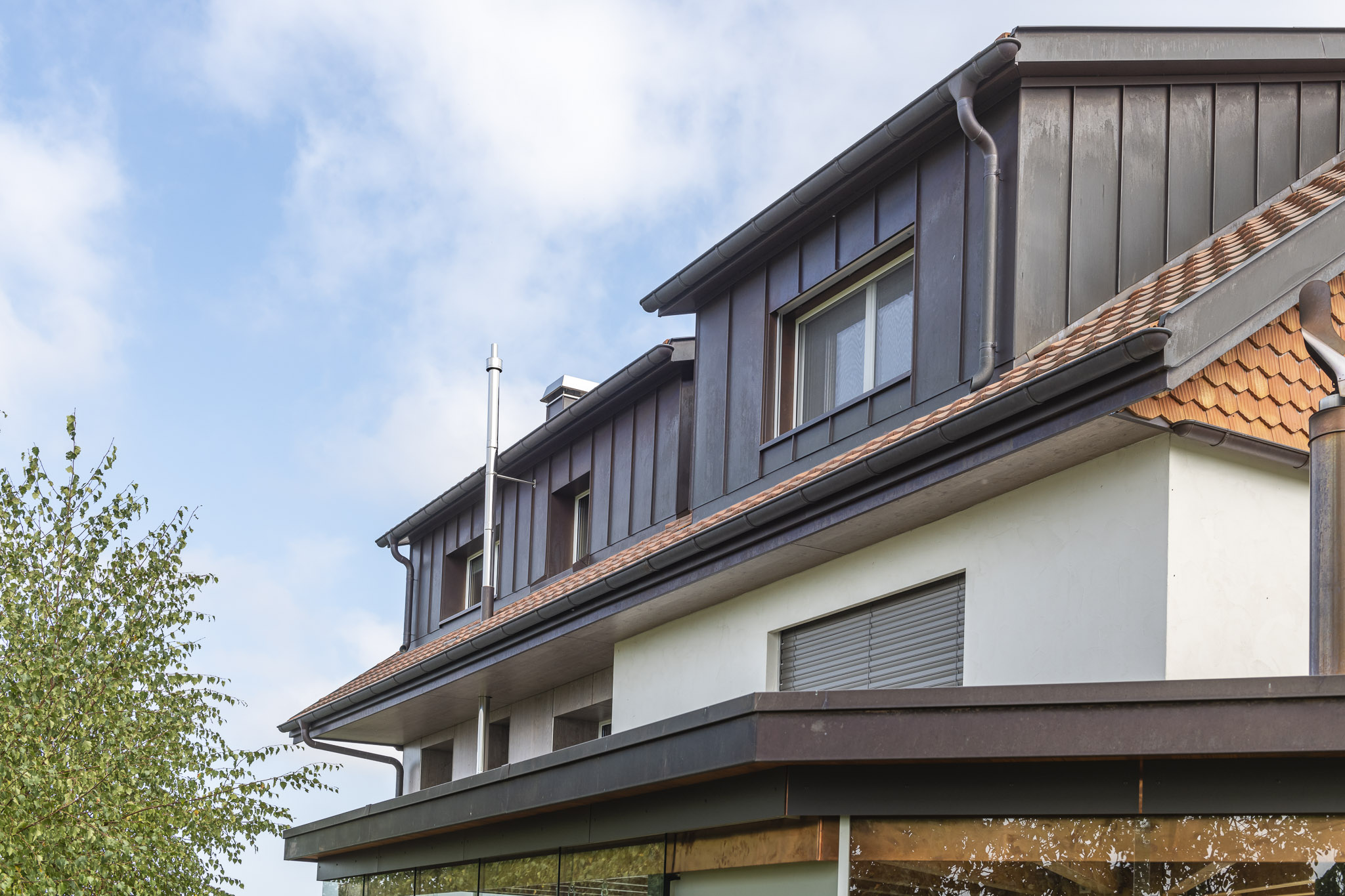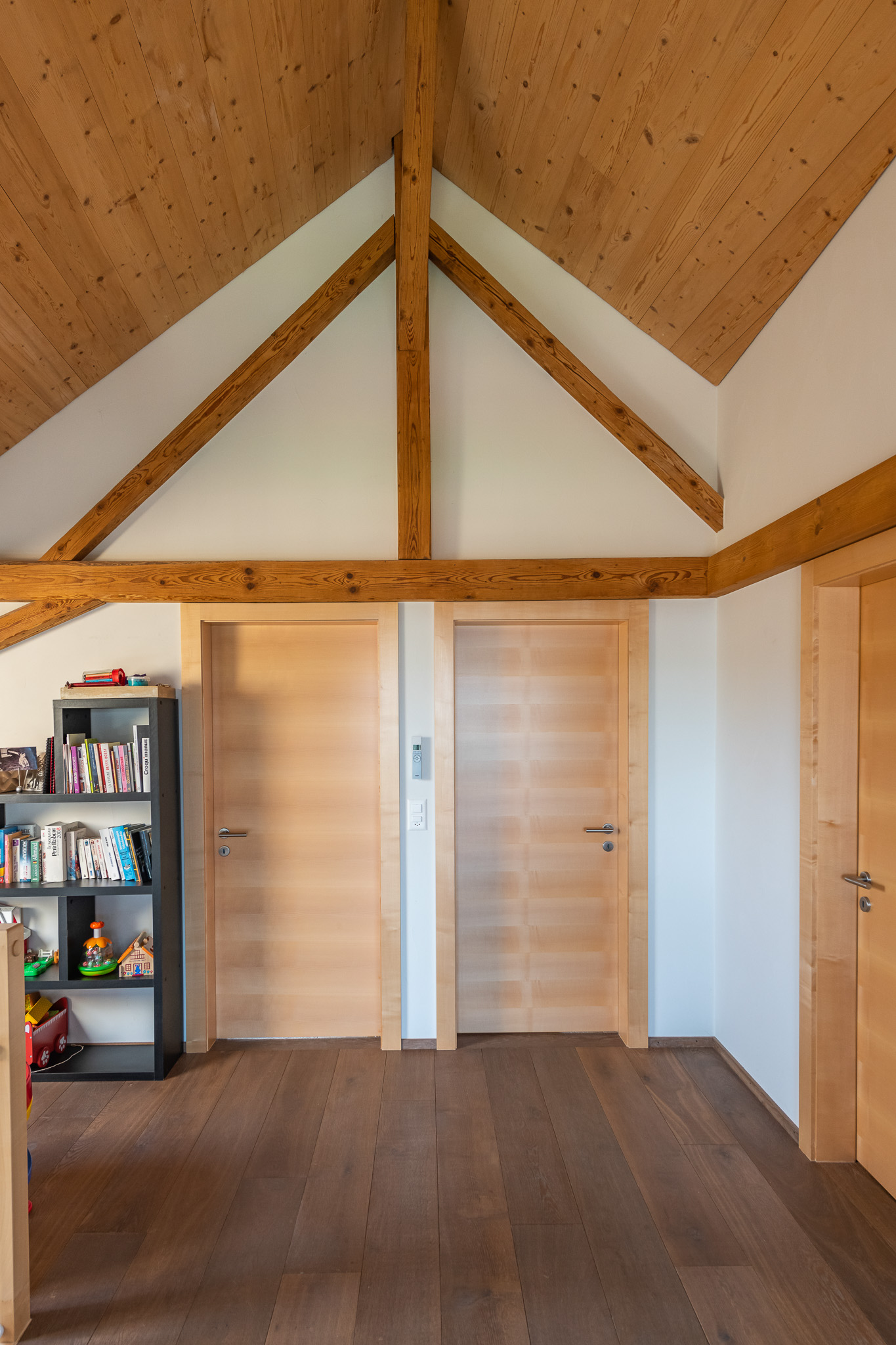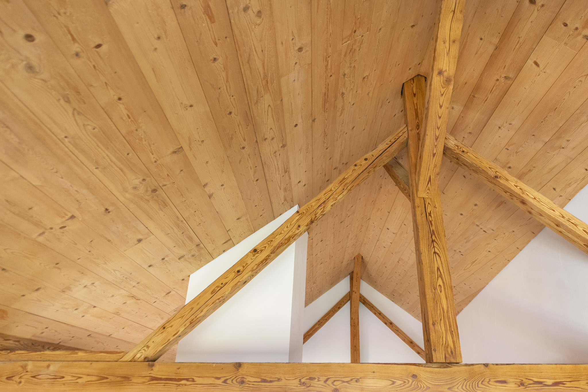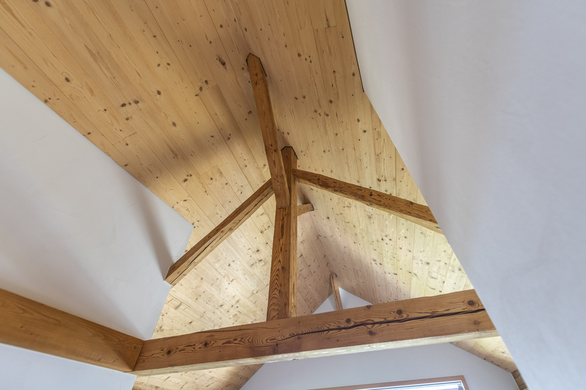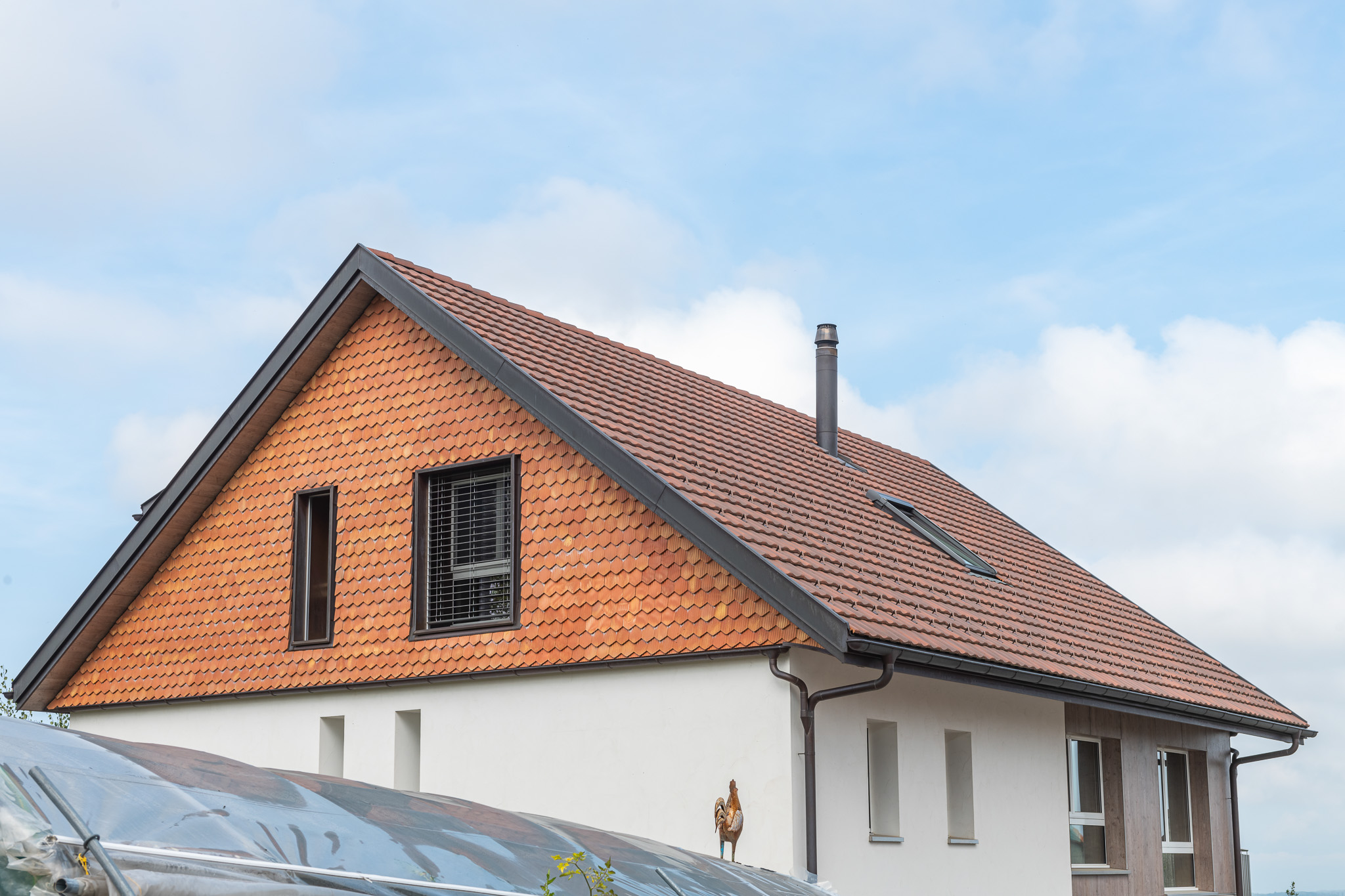 Cette maison a été rénovée en valorisant le bois naturel à l’intérieur, pour une ambiance chaleureuse et authentique. À l’extérieur, le pignon en tuiles apporte caractère et originalité à l’ensemble.
