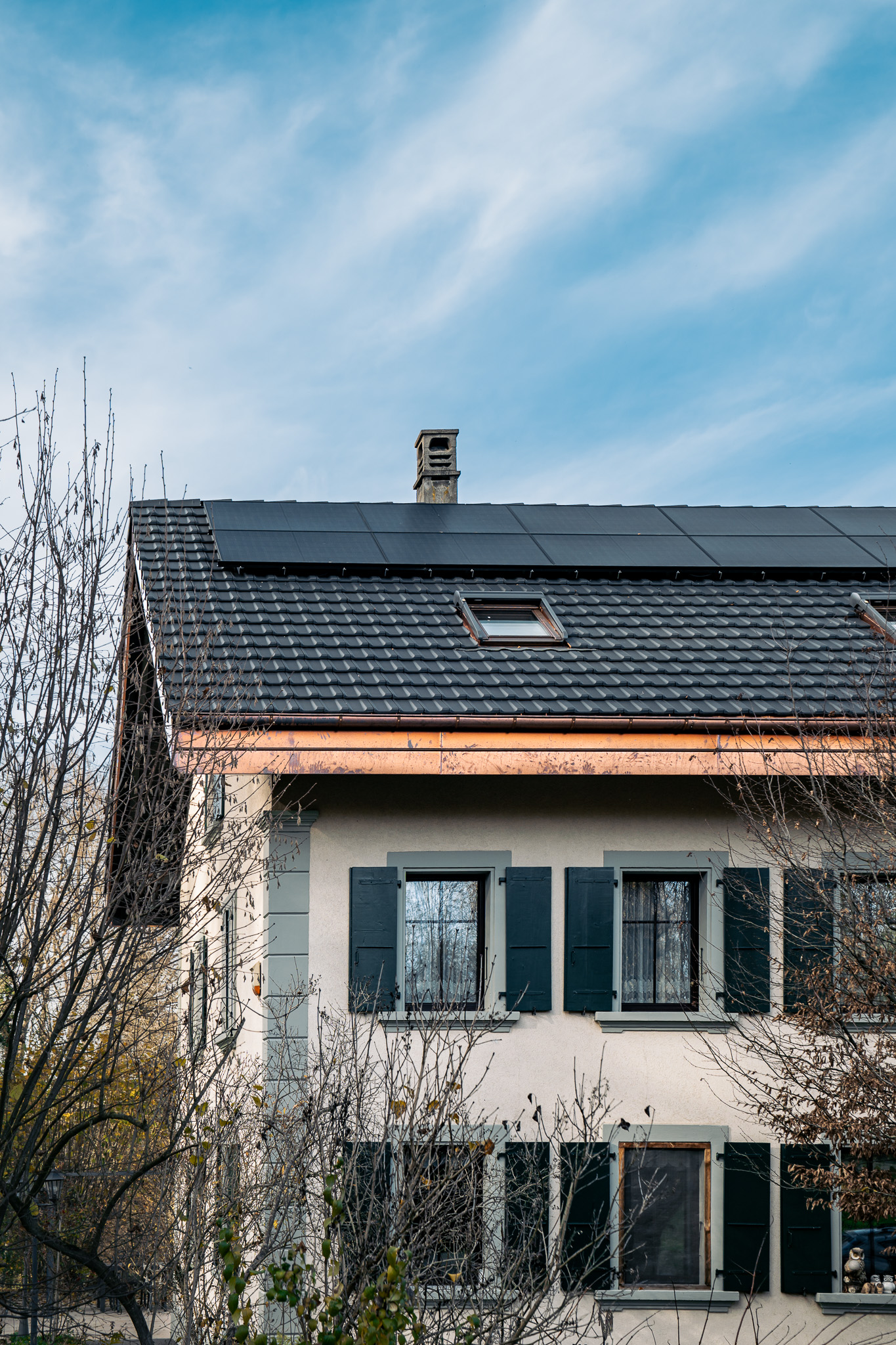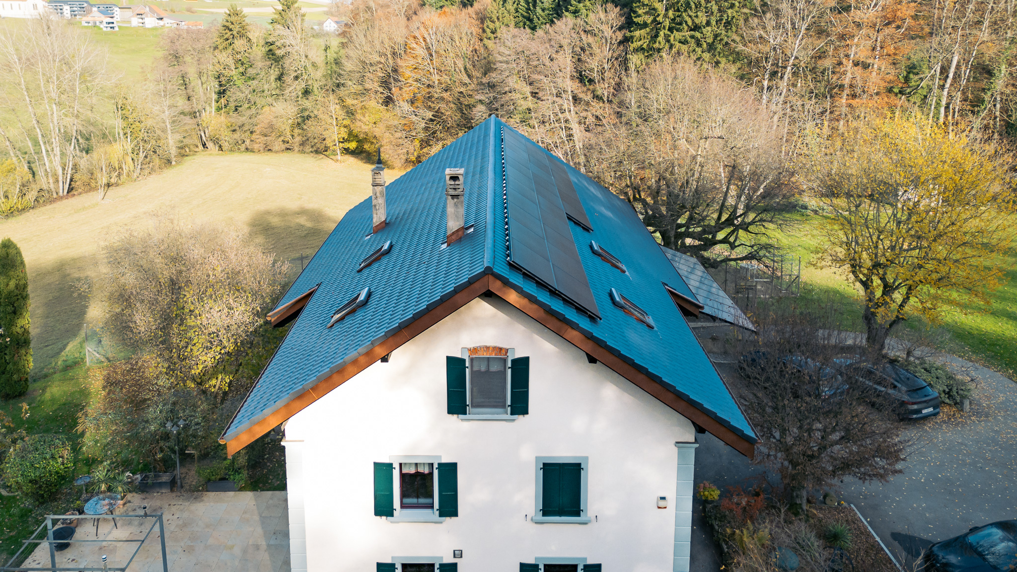 Le pan le plus favorable a ensuite été équipé d’une installation photovoltaïque en apposé, permettant de produire une énergie propre et locale tout en assurant une intégration discrète sur le bâtiment.