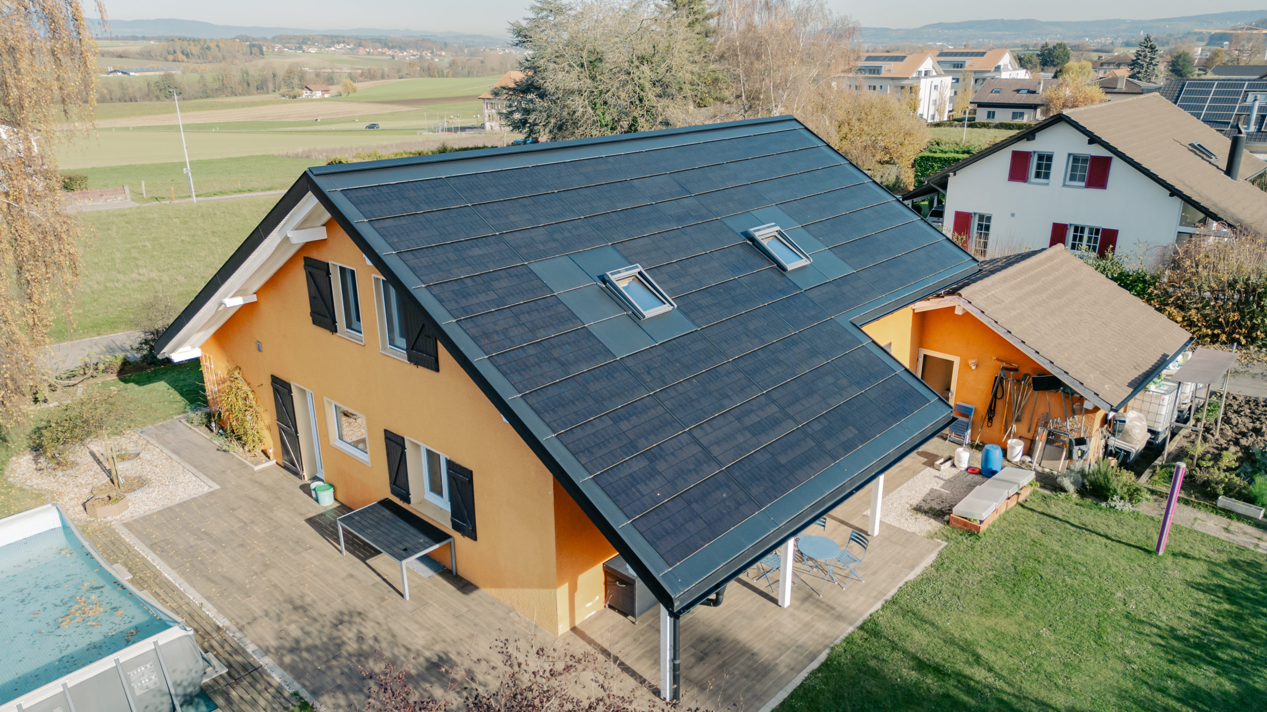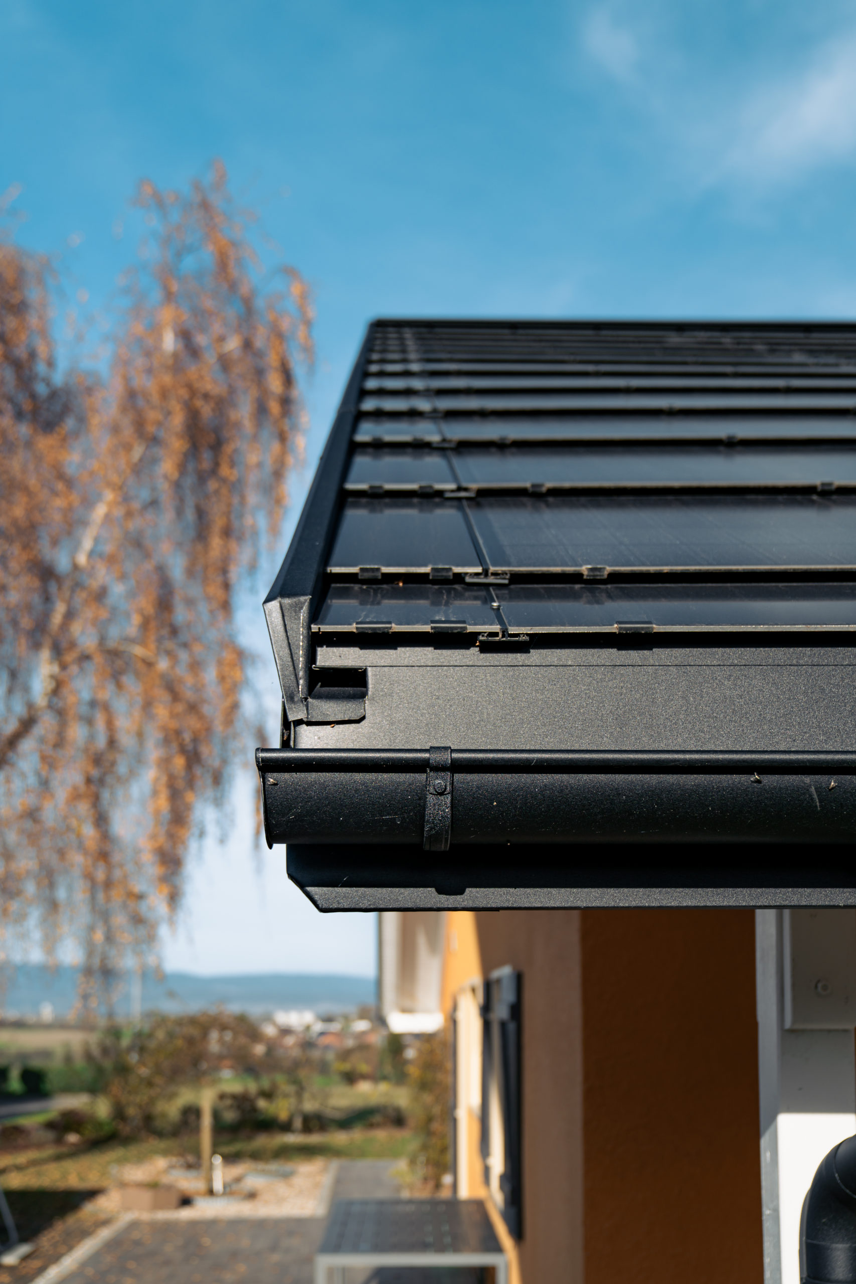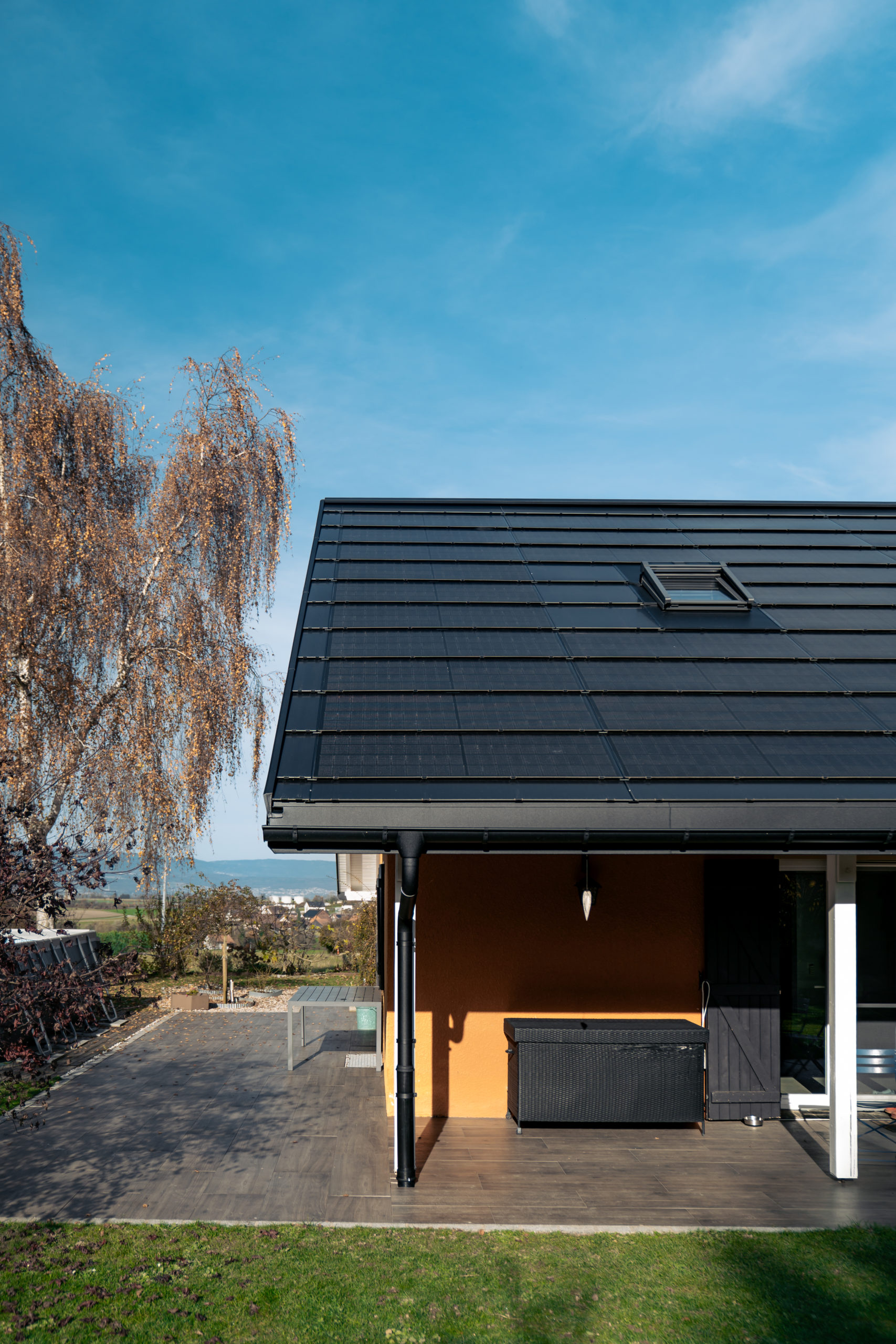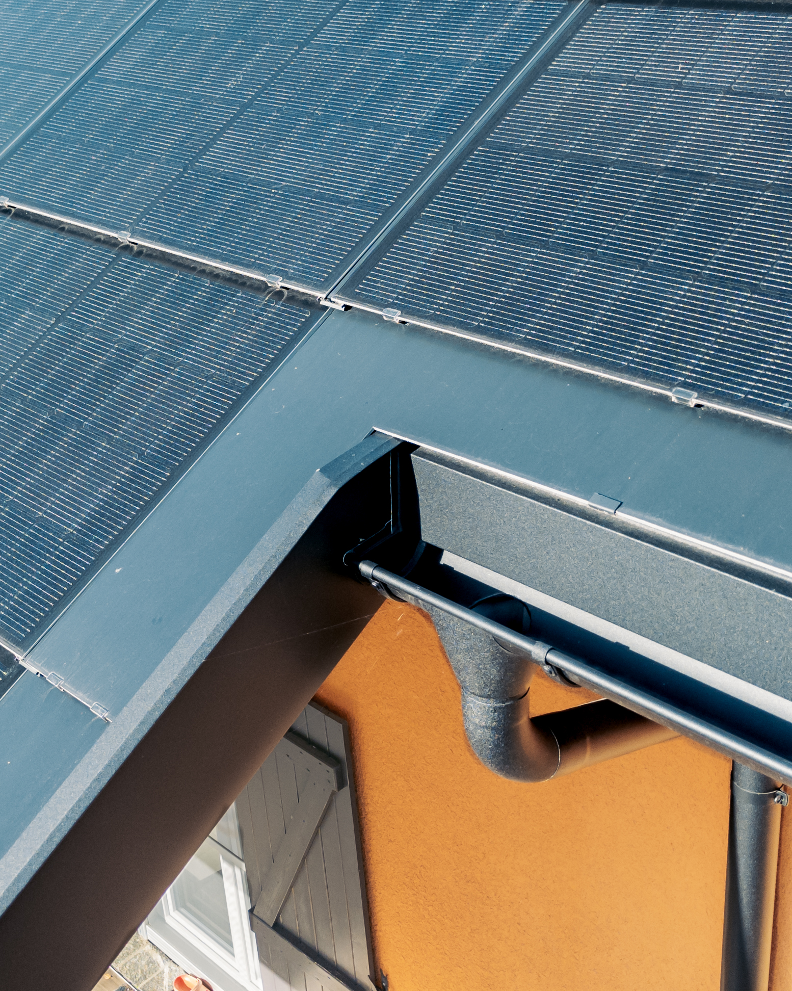 Un pan entier a ensuite été équipé d’une installation photovoltaïque intégrée, mise en valeur par des ferblanteries en aluminium noir qui renforcent l’homogénéité et l’esthétique du résultat.