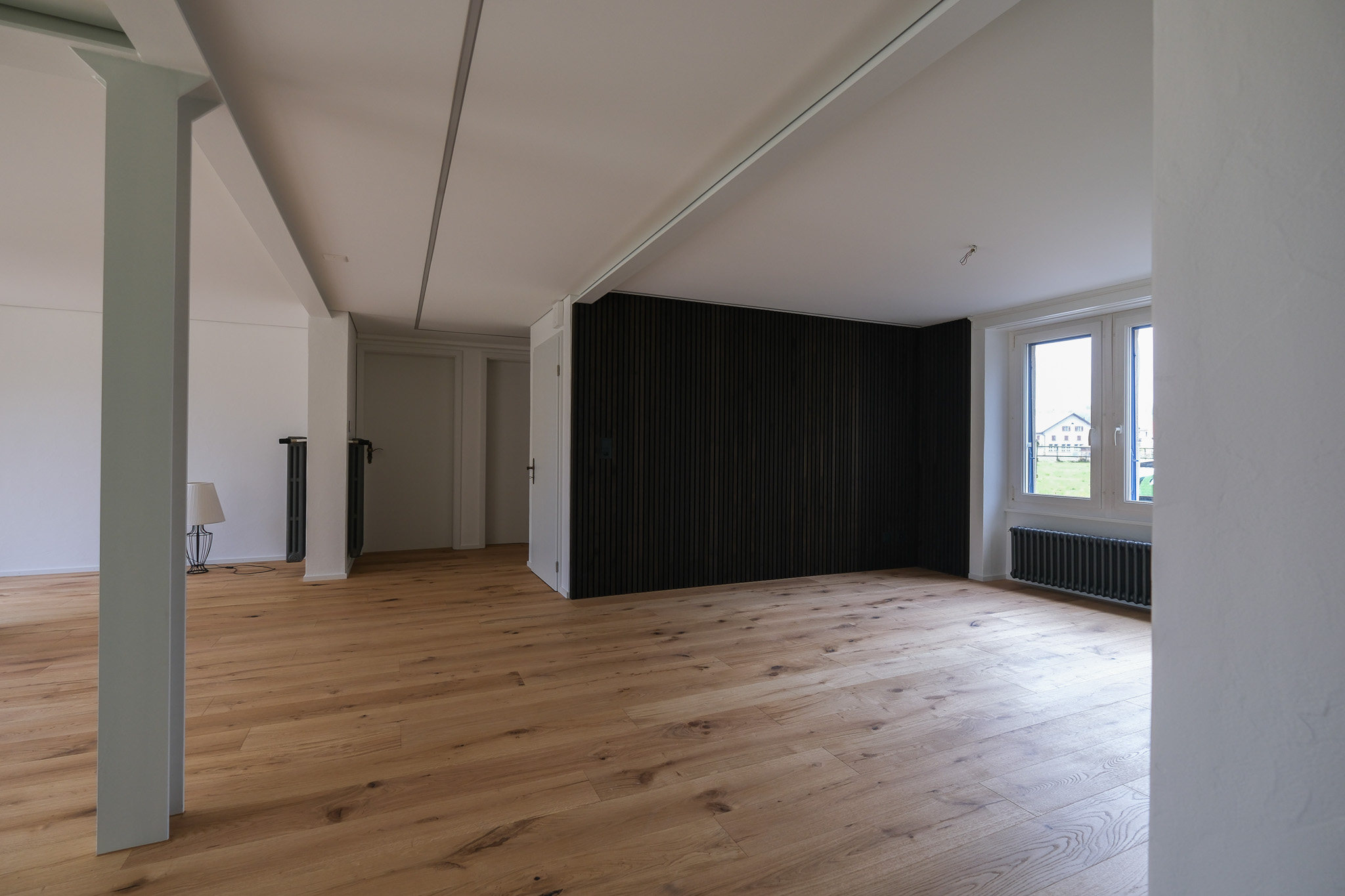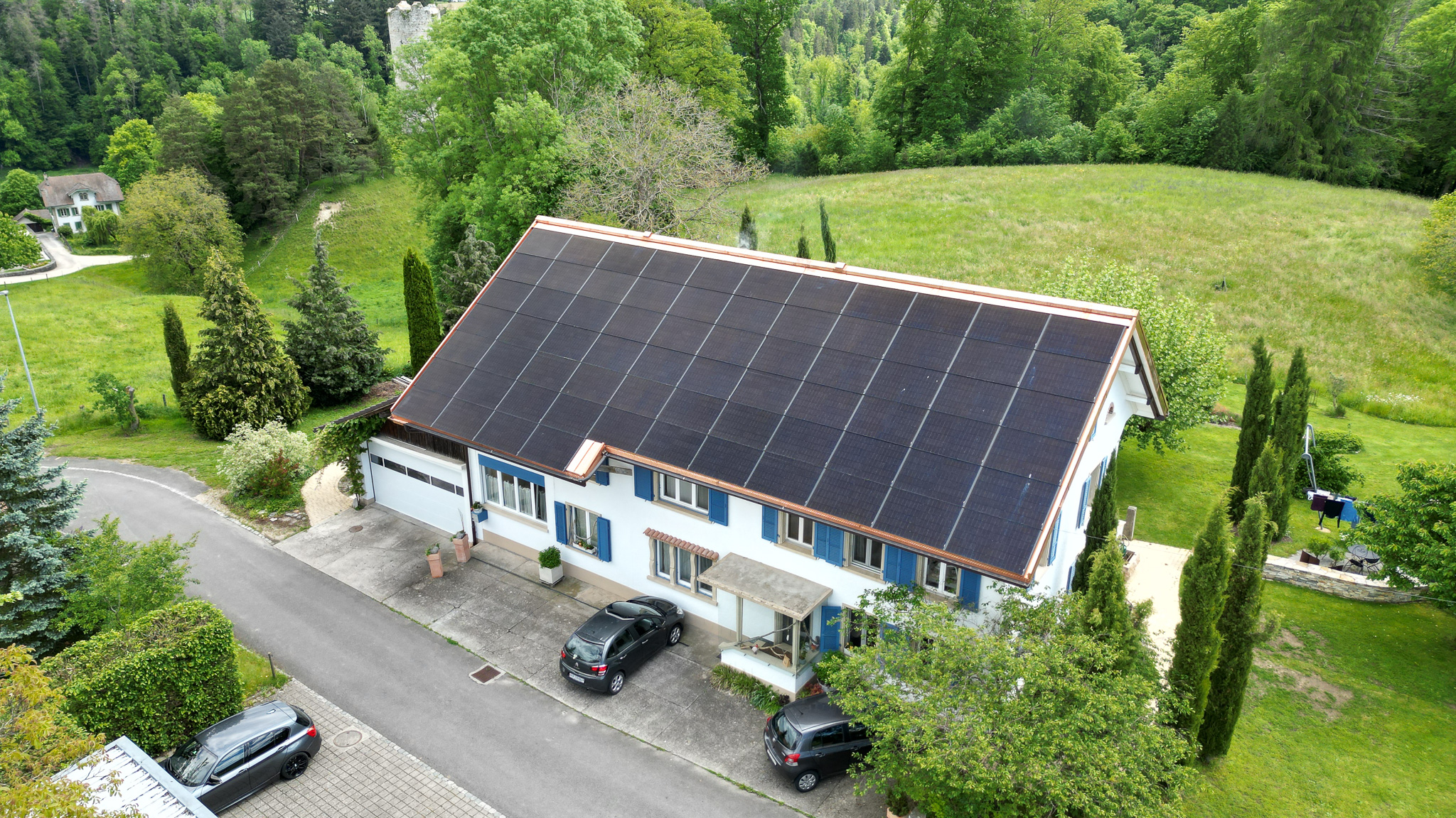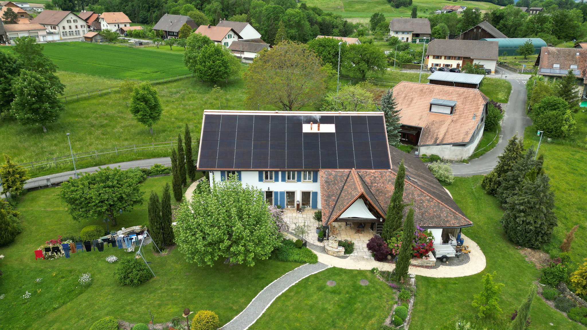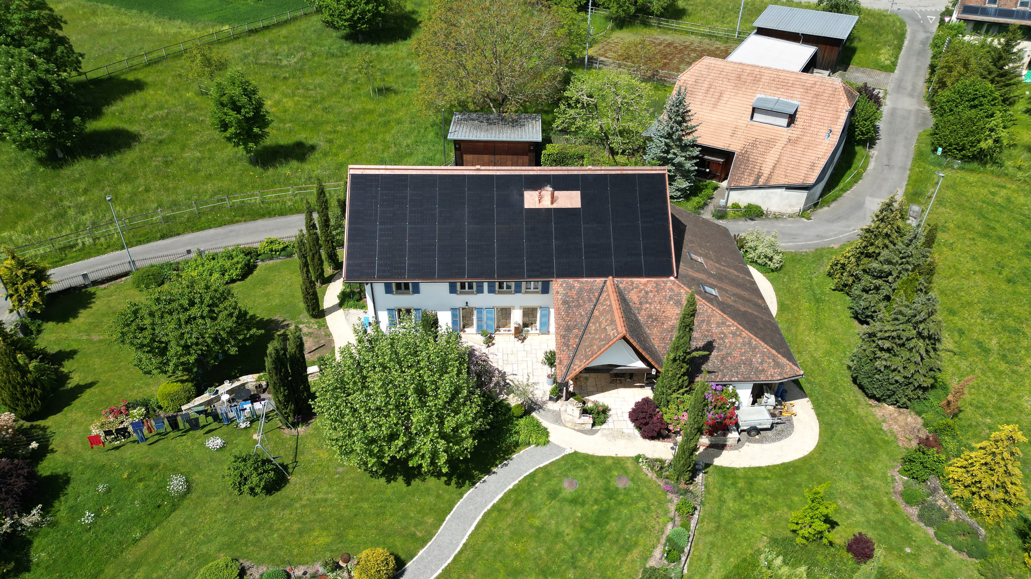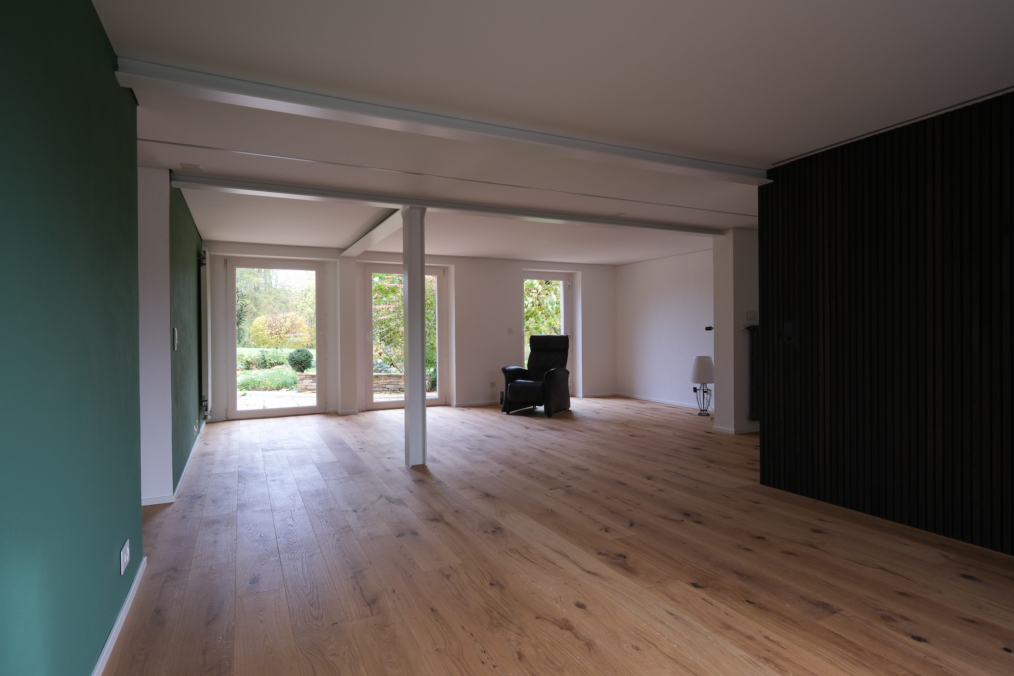 À Montagny, la rénovation a commencé par la réorganisation et la modernisation du séjour. L’année suivante, la toiture a été entièrement reprise et transformée en une installation photovoltaïque intégrée.