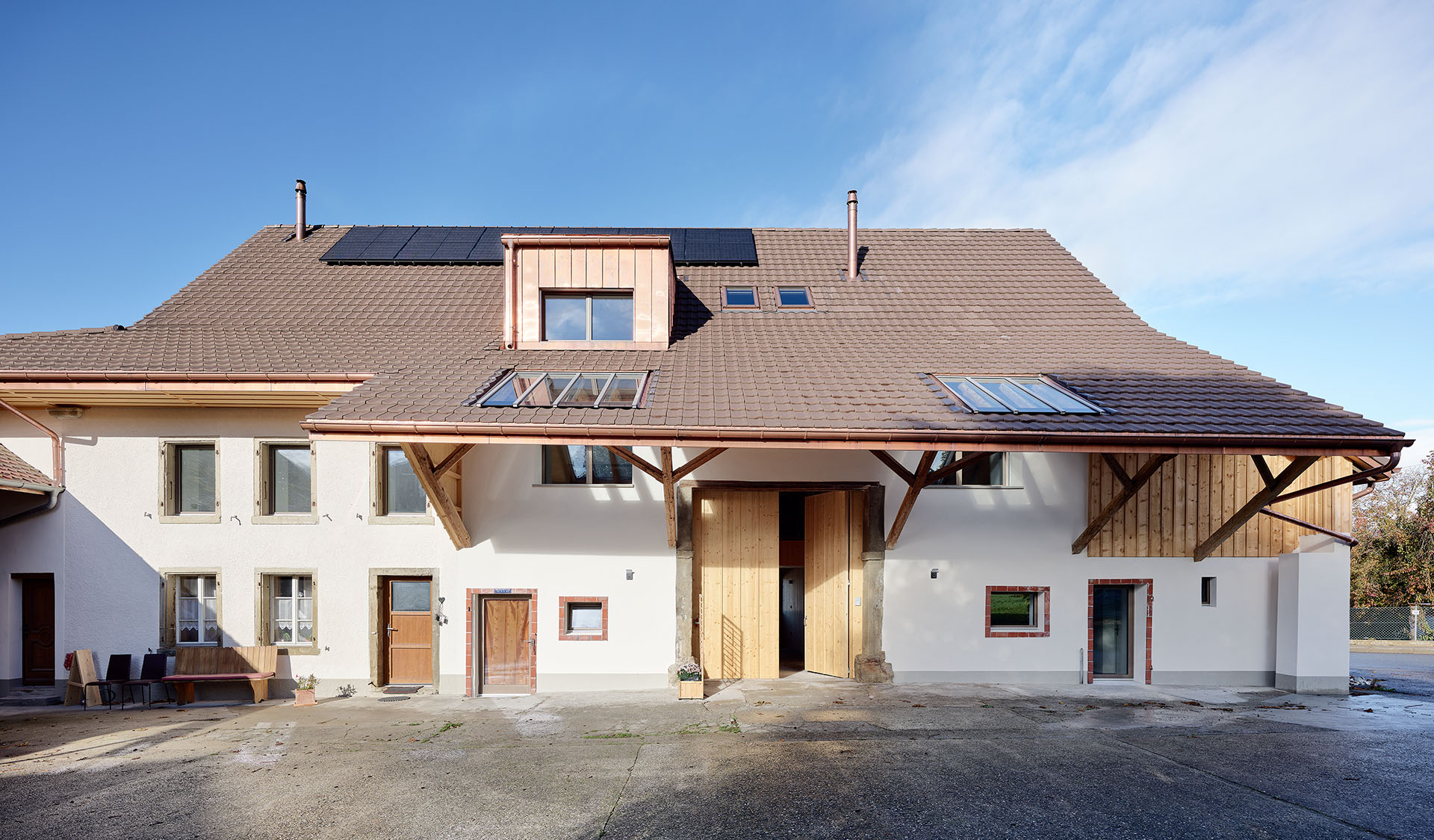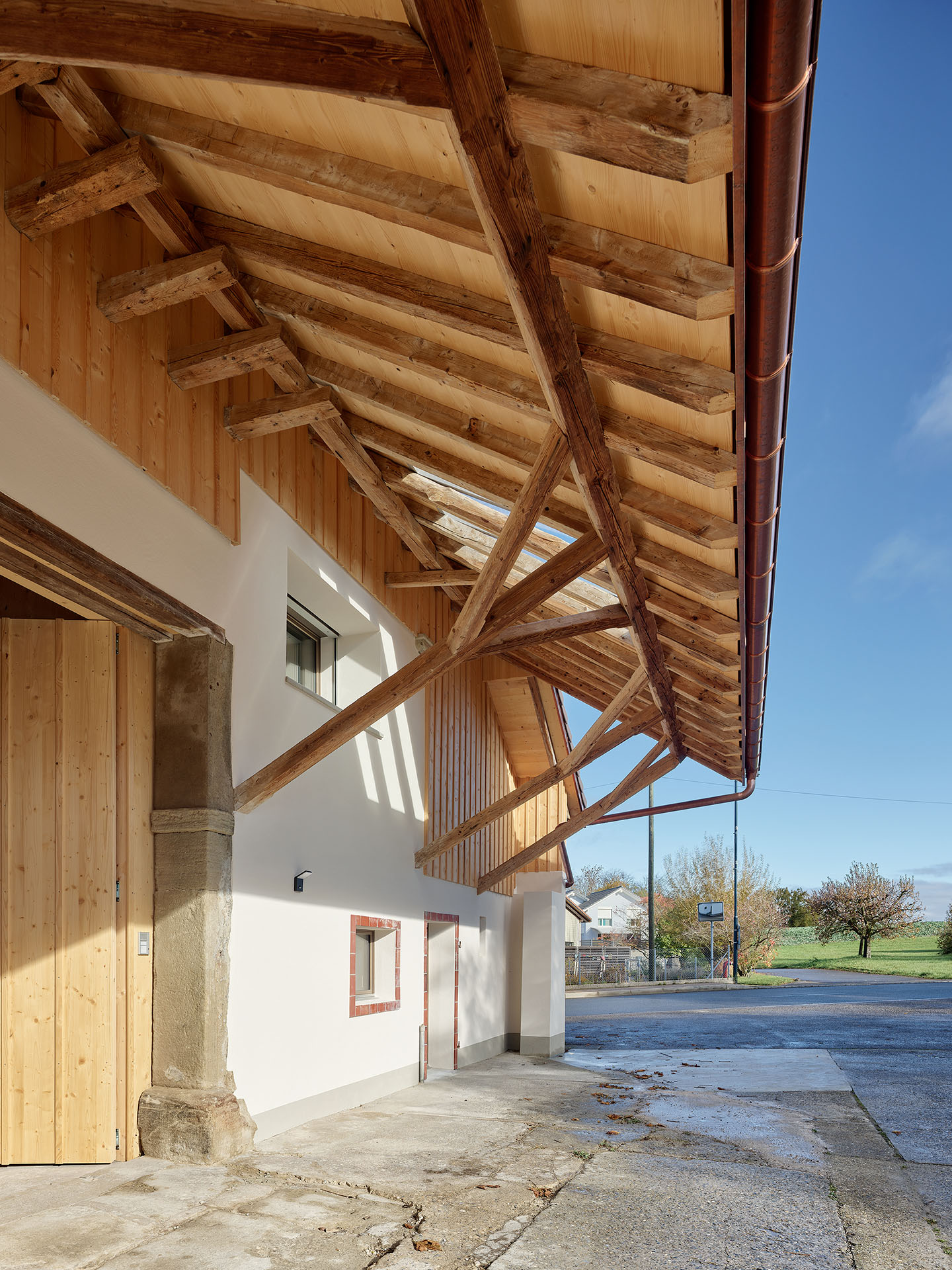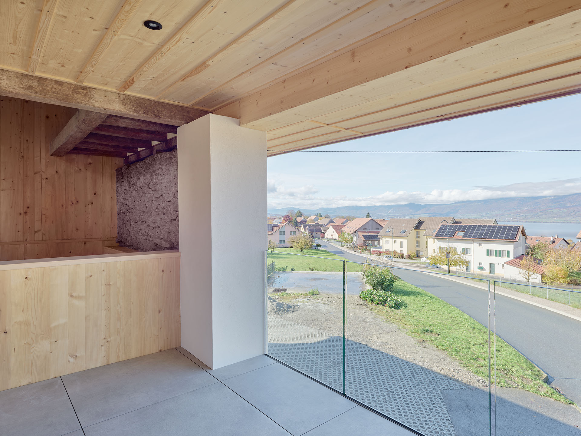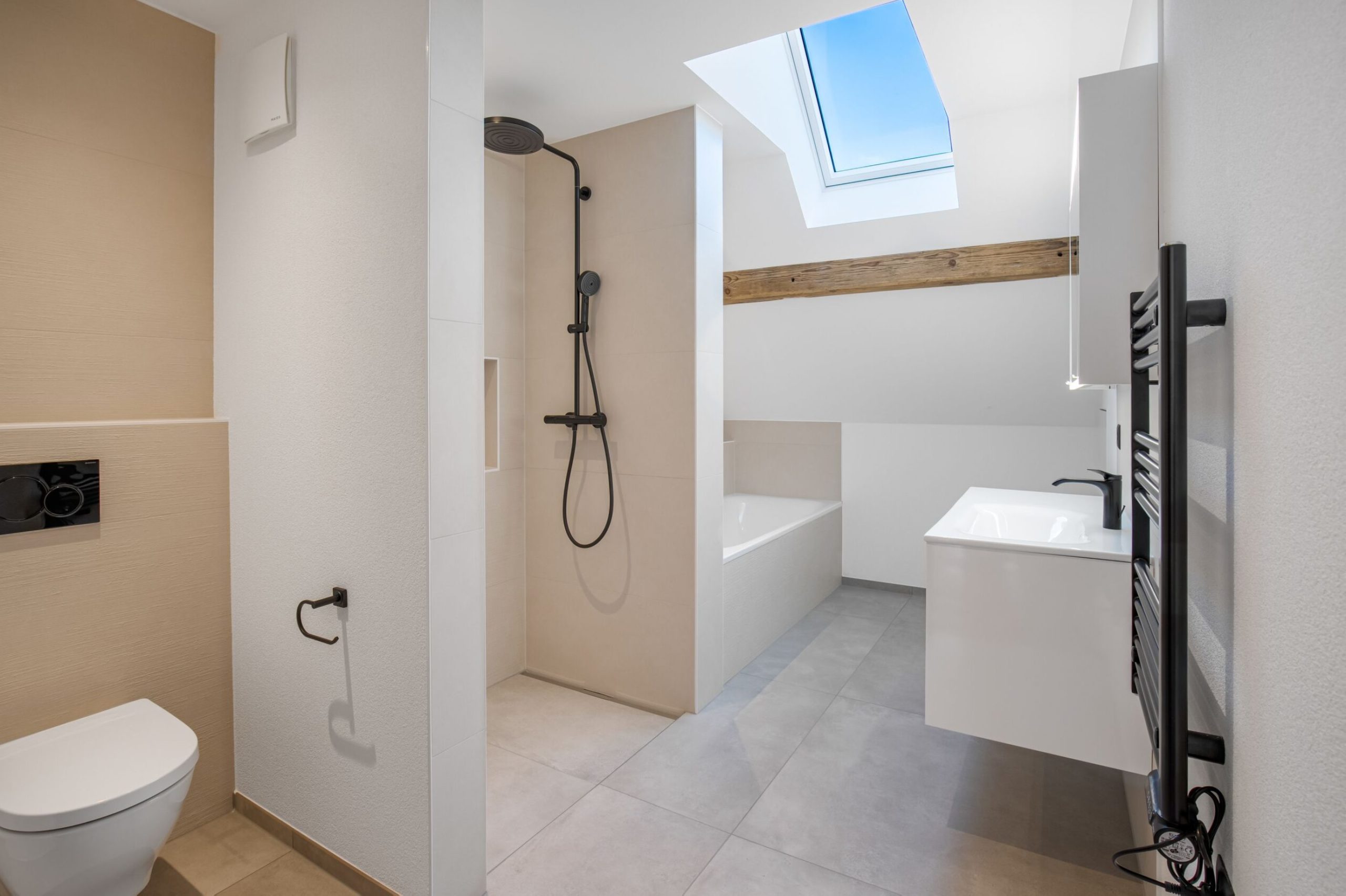 À Châbles, cette ancienne ferme a retrouvé vie à travers une rénovation complète, à la fois audacieuse et respectueuse du bâtiment d’origine. La toiture a été entièrement refaite, et l’intérieur accueille désormais un appartement en triplex où chaque détail reflète la qualité du travail artisanal.