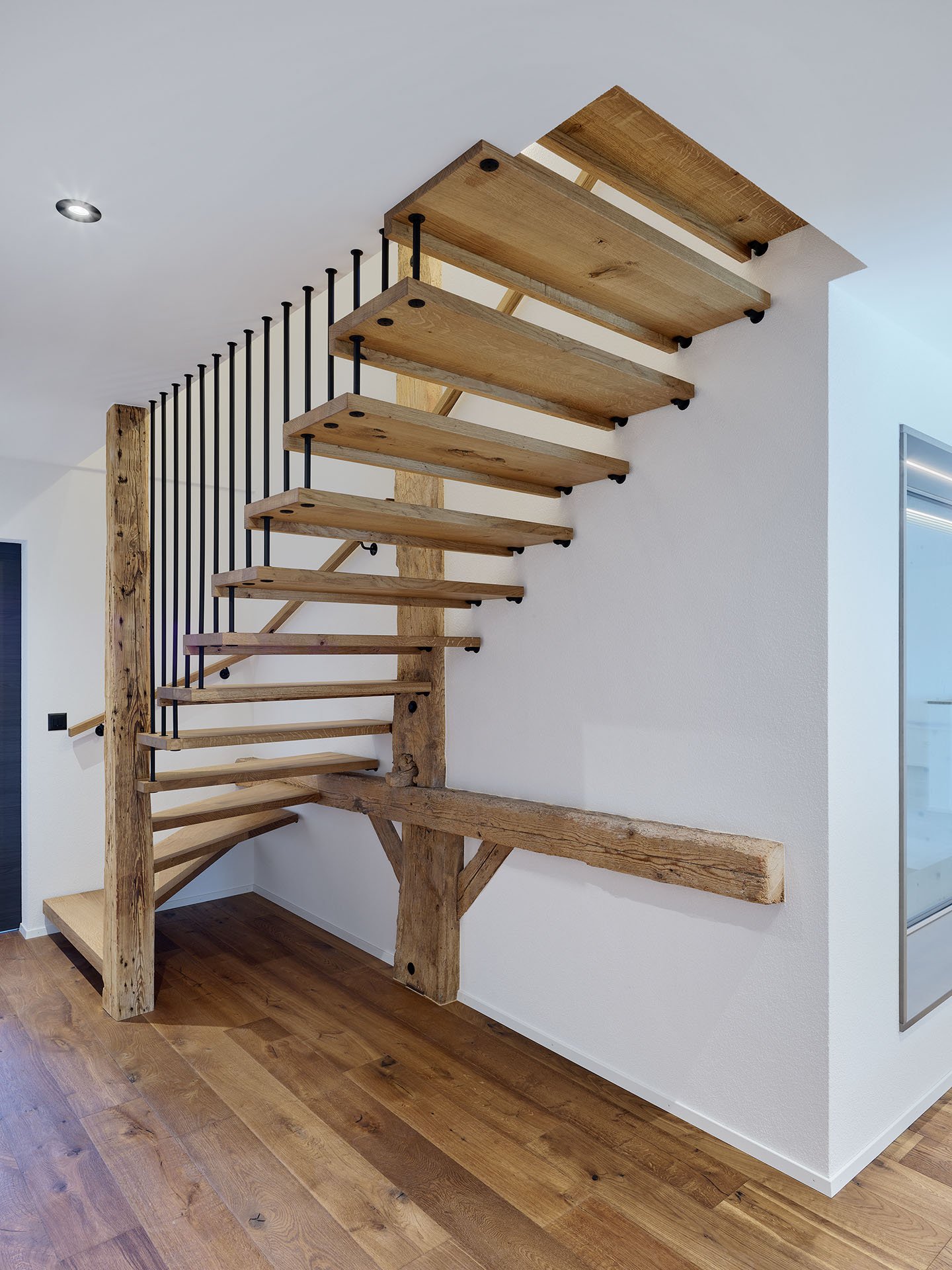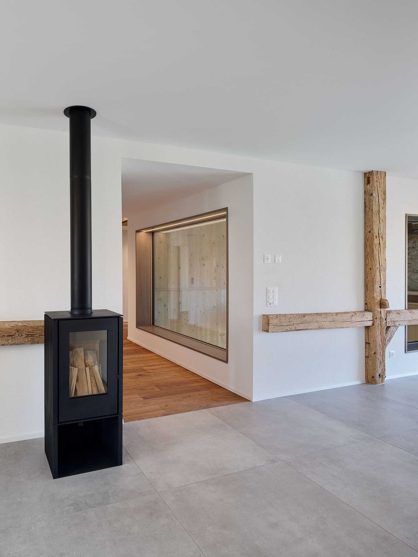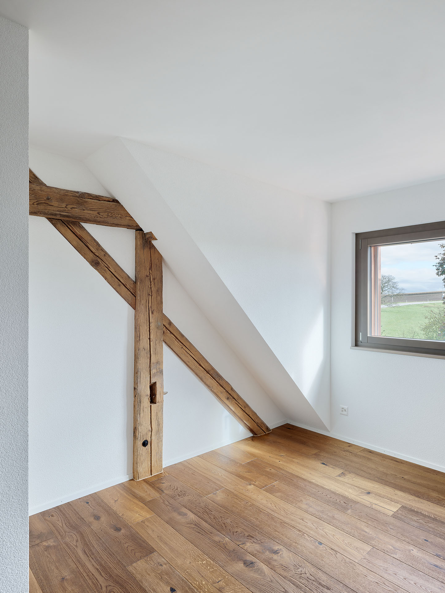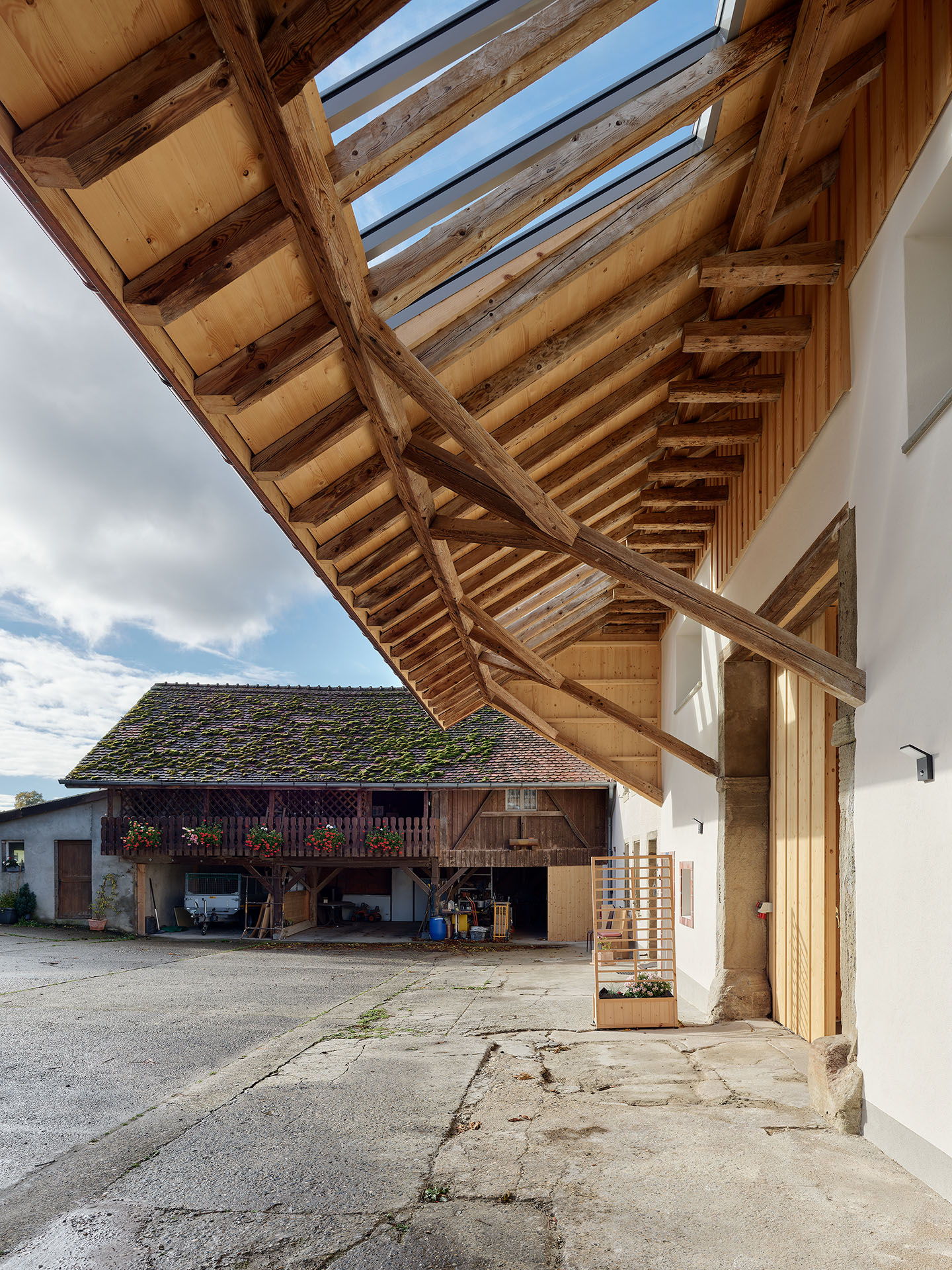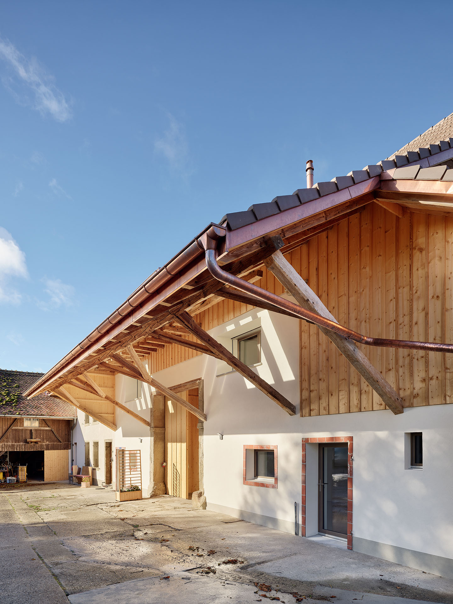 À Châbles, cette ancienne ferme a retrouvé vie à travers une rénovation complète, à la fois audacieuse et respectueuse du bâtiment d’origine. La toiture a été entièrement refaite, et l’intérieur accueille désormais un appartement en triplex où chaque détail reflète la qualité du travail artisanal.