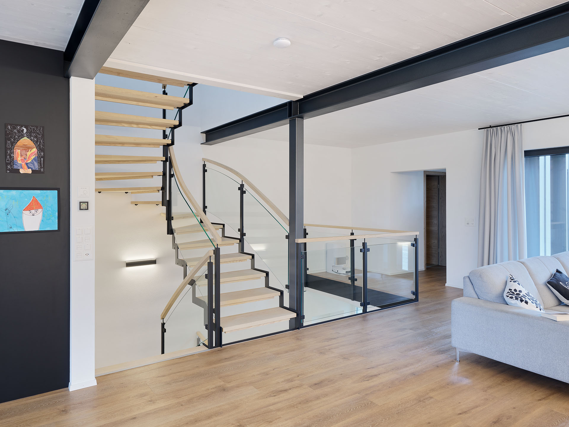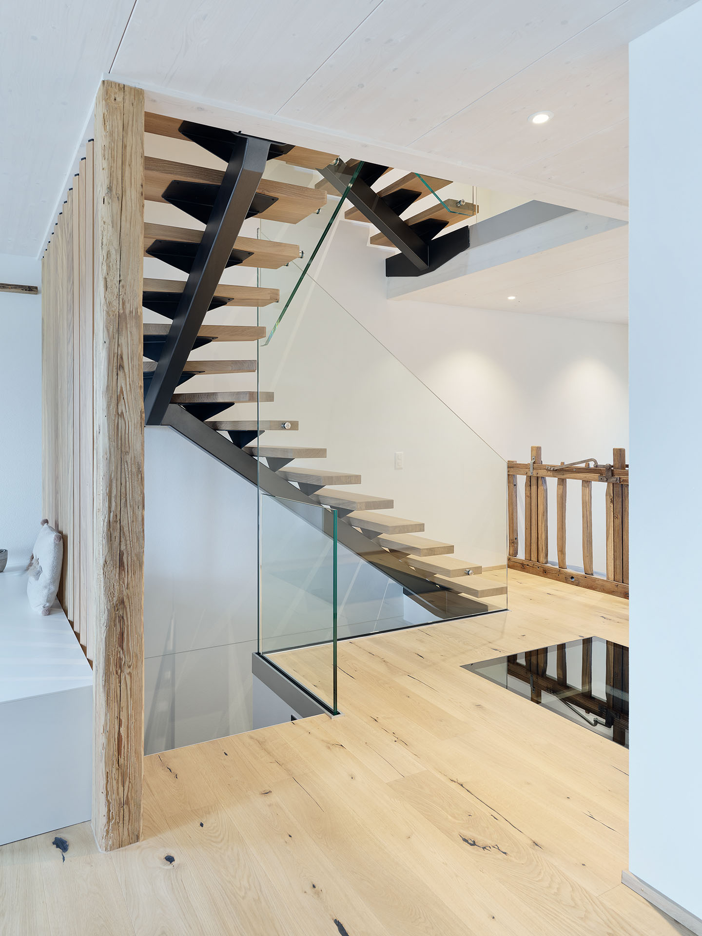Cette ferme a été presque entièrement transformée pour accueillir deux appartements modernes dans l’ancienne partie rurale. L’authenticité du bâtiment a été préservée, tout en intégrant des éléments remarquables comme des escaliers sur mesure, qui donnent caractère et élégance aux nouveaux espaces de vie.