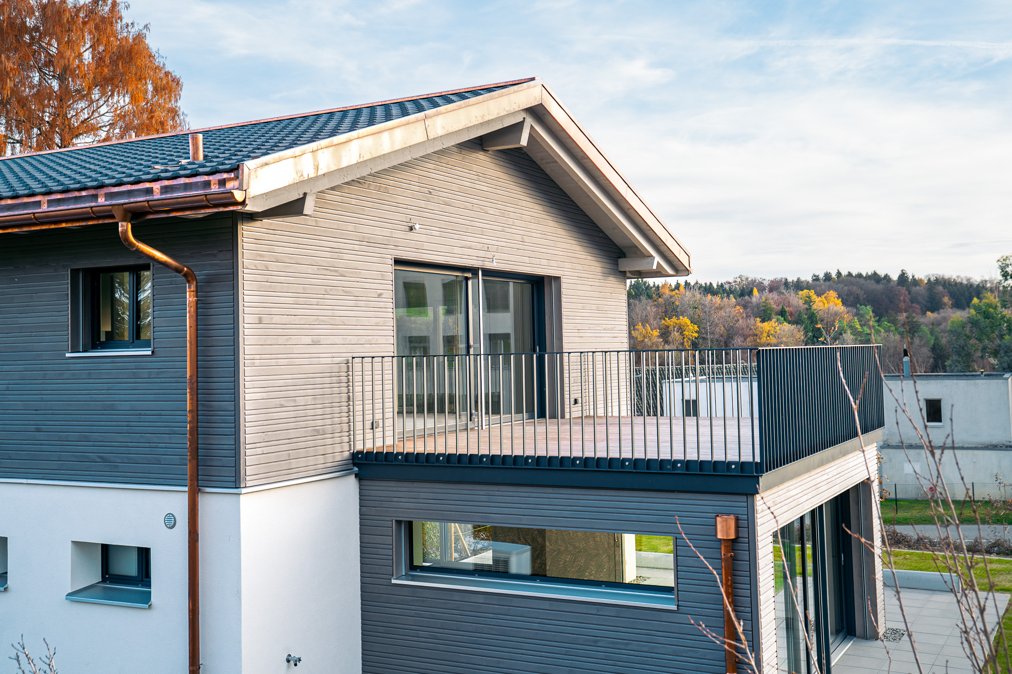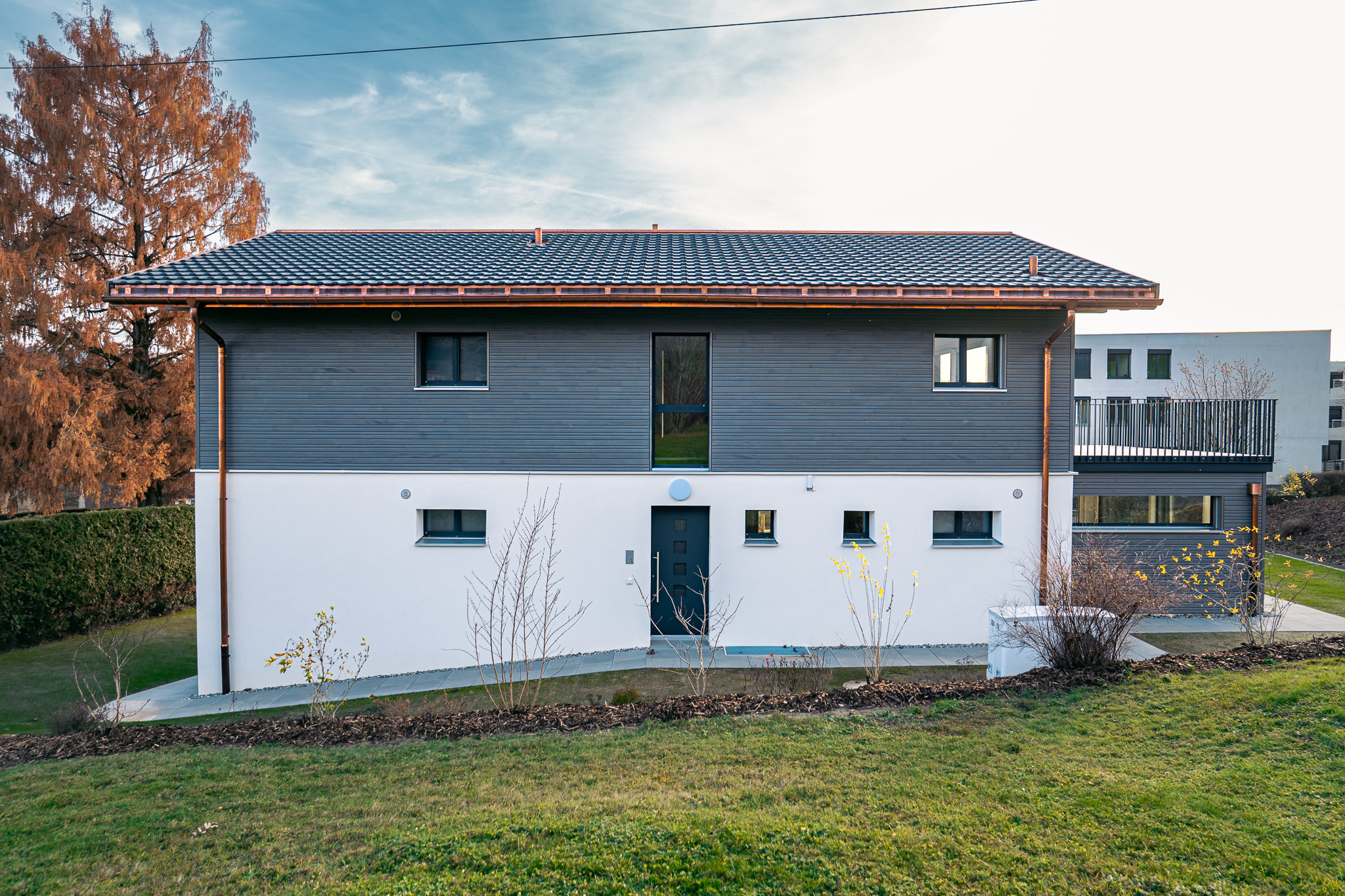 L’extérieur suit cette identité : lames bois en façade, lignes sobres, volumes cohérents.